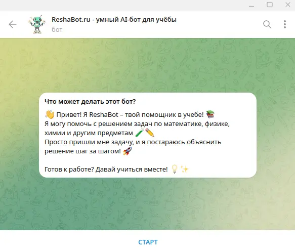 ReshaBot работает с большинством школьных и университетских дисциплин